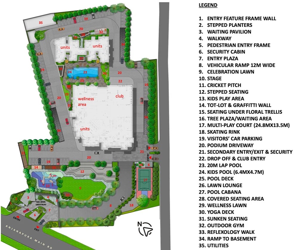 The project faces Anjanapura Central Park, a lush green sanctuary offering breathtaking park views that seamlessly blend modern comfort with natural beauty.
